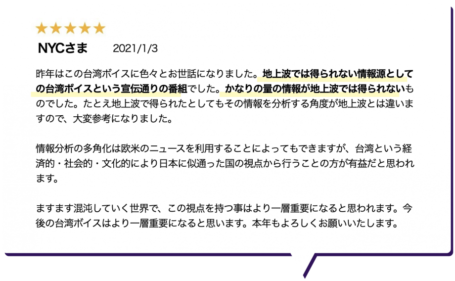 TAIWAN VOICEには2つの役割があります。